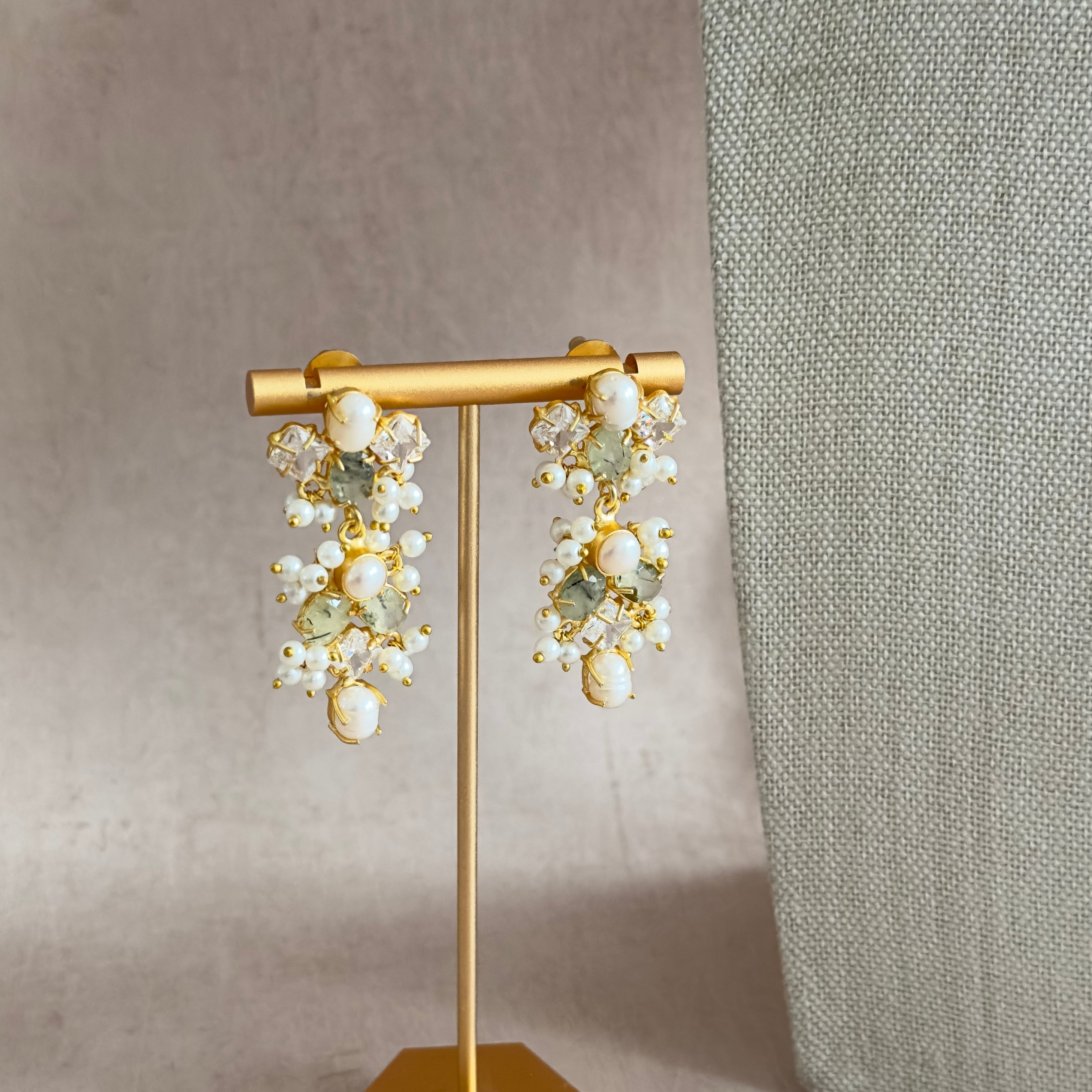 Elevate your elegance with the Elouise Olive Necklace Set, featuring serene prehnite stones artfully paired with lustrous pearls and sparkling cubic zirconia crystals. This sophisticated set includes matching drop earrings and a tikka, adding a graceful touch to any ensemble. Perfect for special occasions.