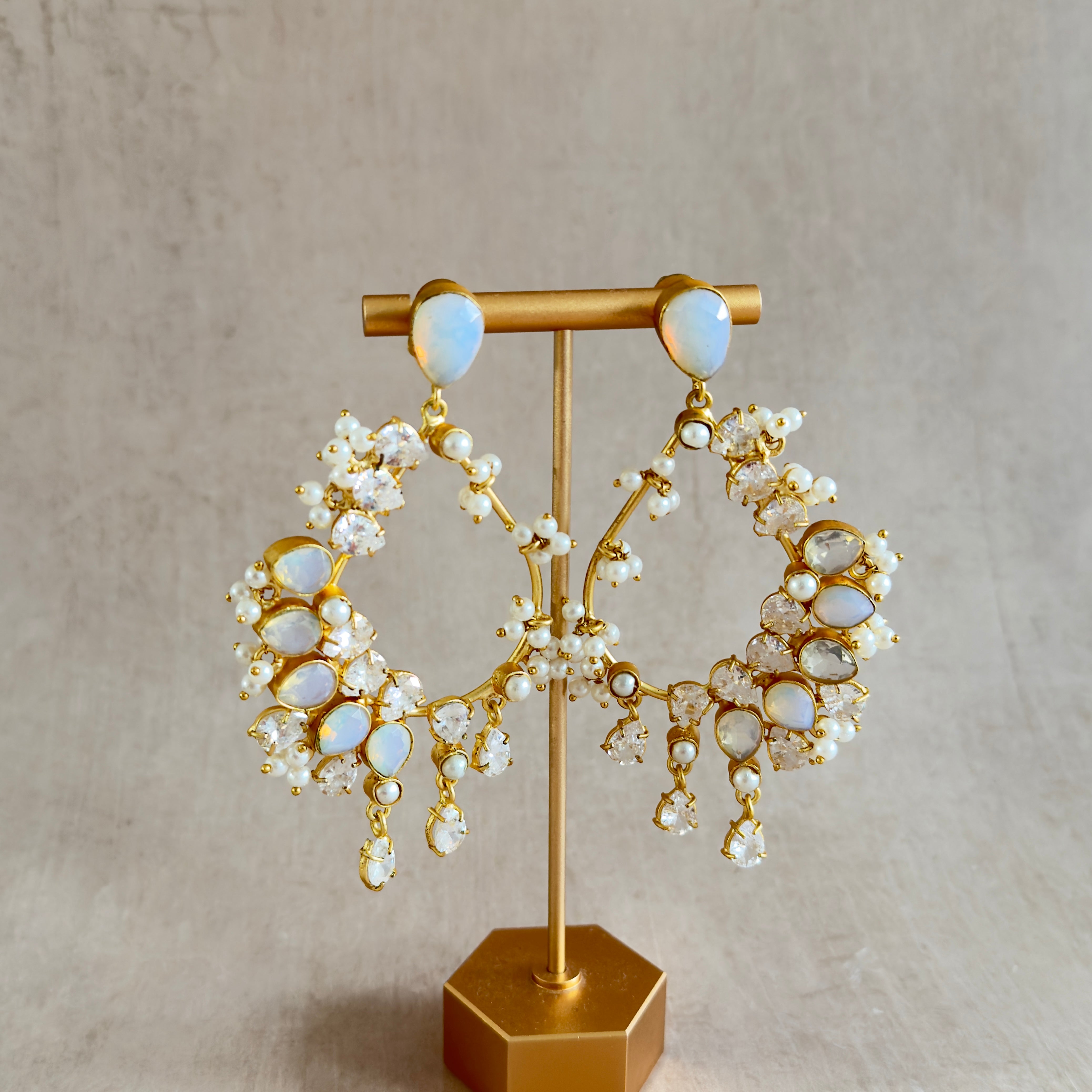 Elevate your look with the Lazura Crystal Drop Earrings, where opalite stones meet sparkling cubic zirconia crystals. These statement earrings catch the light beautifully, creating a mesmerising play of colour and brilliance. Perfect for adding instant sophistication to any outfit.