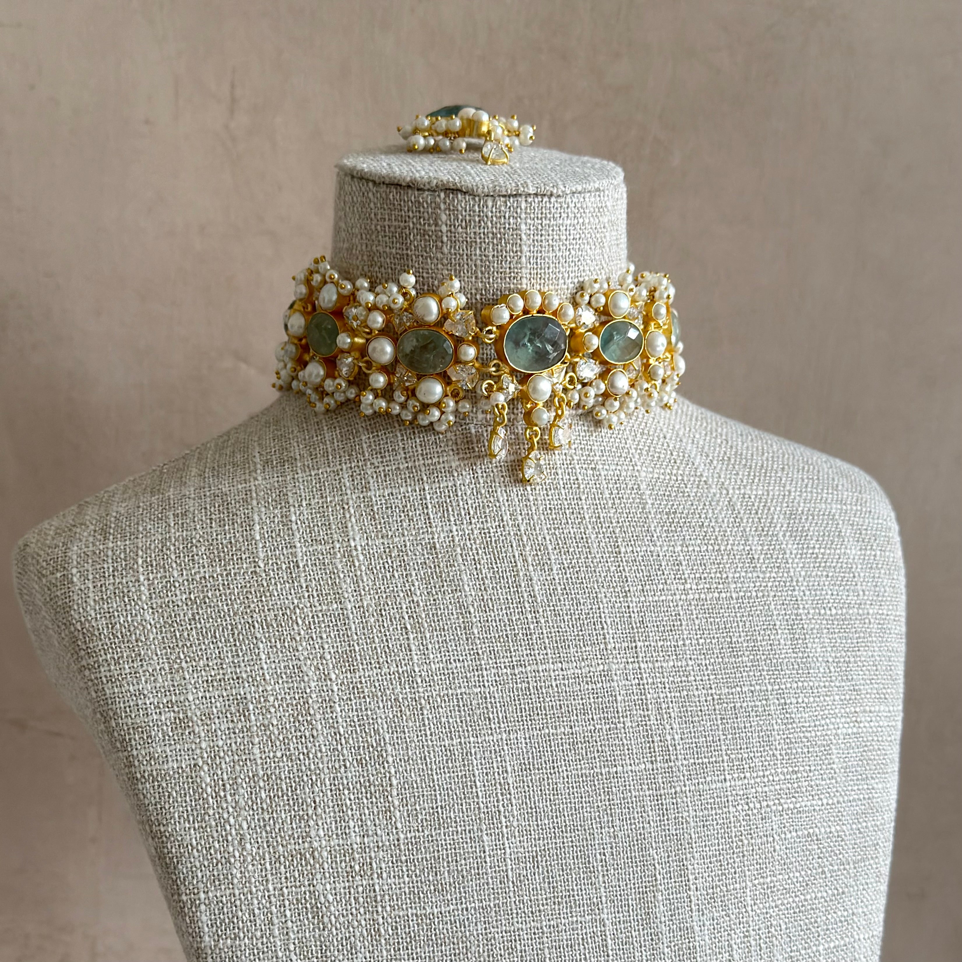 Khawla Mint Pearl Choker Set