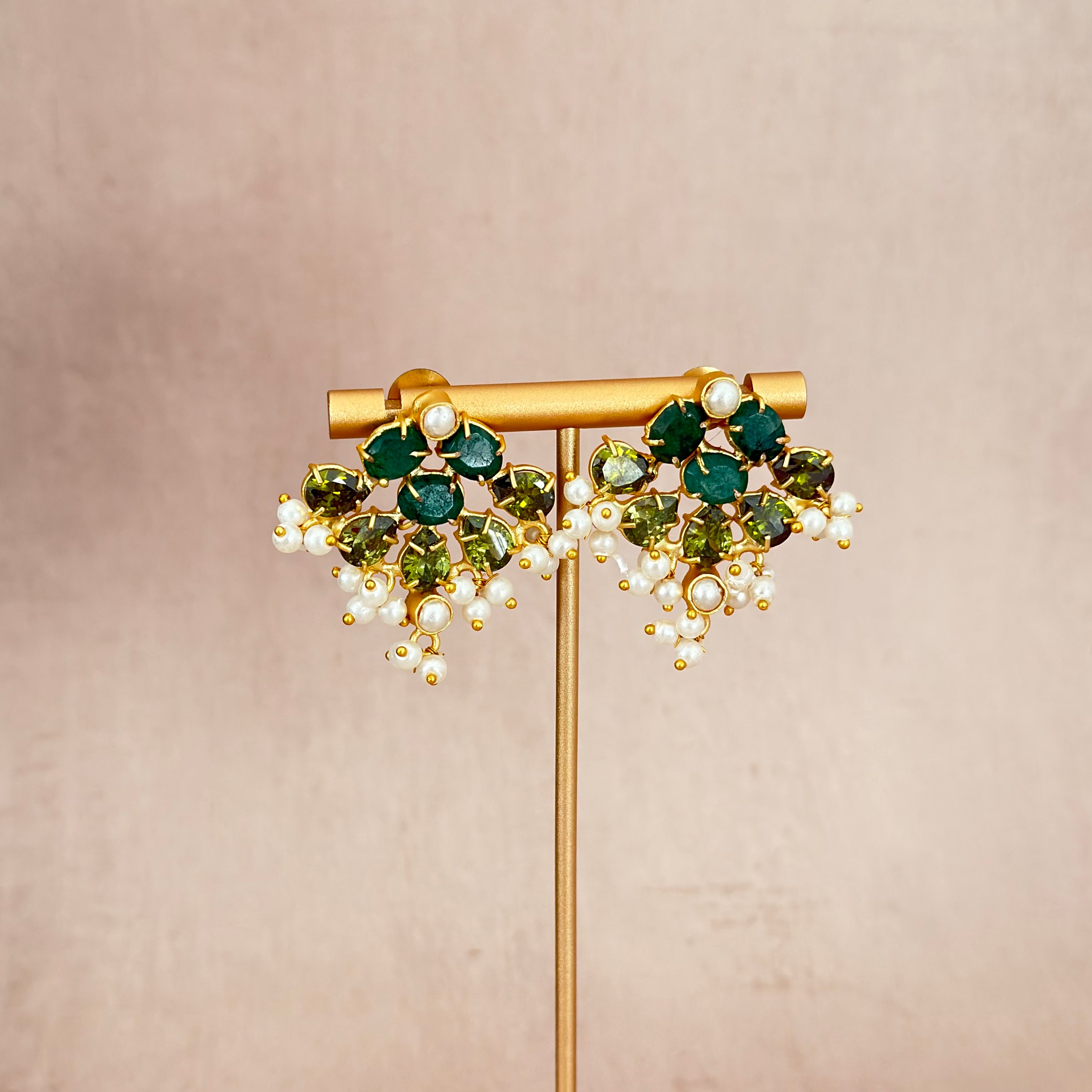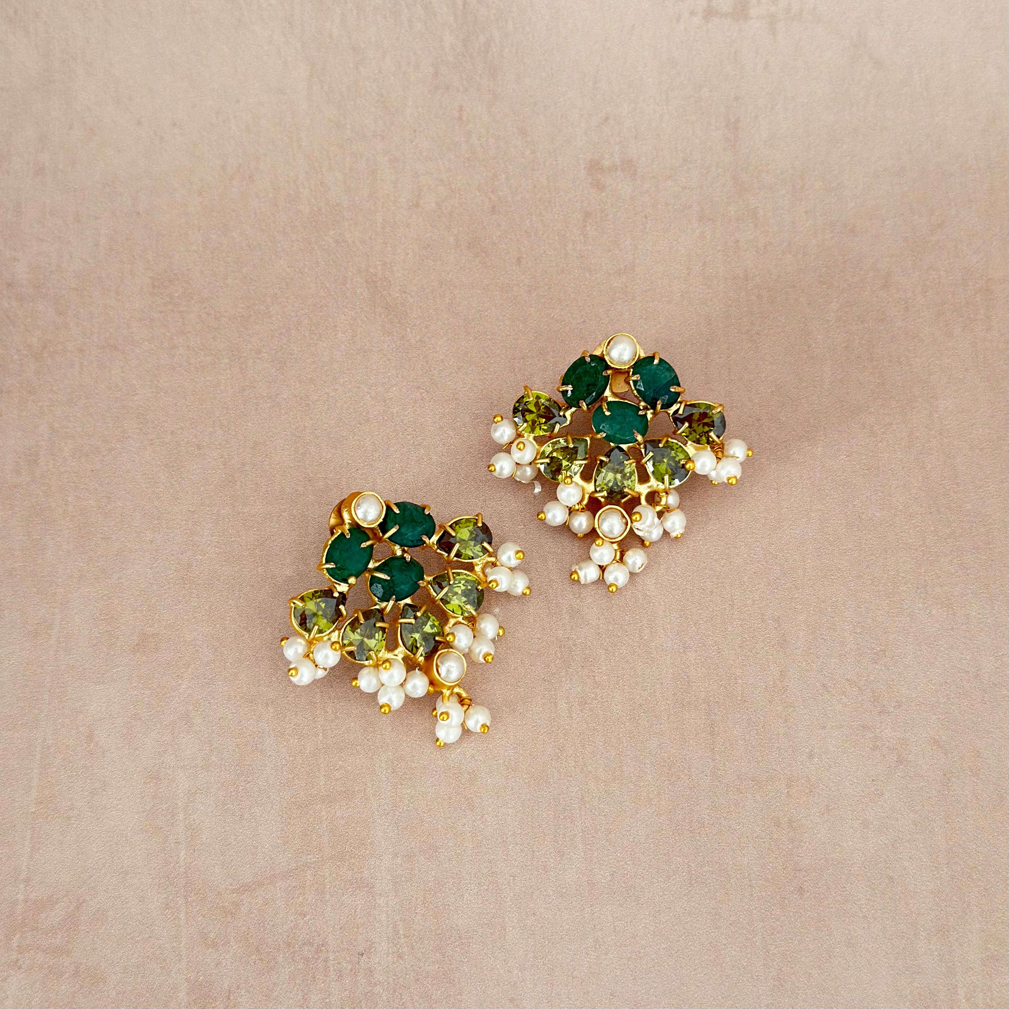 The Rahma Green Stud Earrings combine beautiful green tones with sparkling cubic zirconia for a timeless look. These elegant studs work perfectly for any occasion, adding a touch of sophistication to your jewellery collection. The brilliant stones catch the light beautifully, while the calming green hue brings natural grace to your style. Simple, stunning, and timeless.