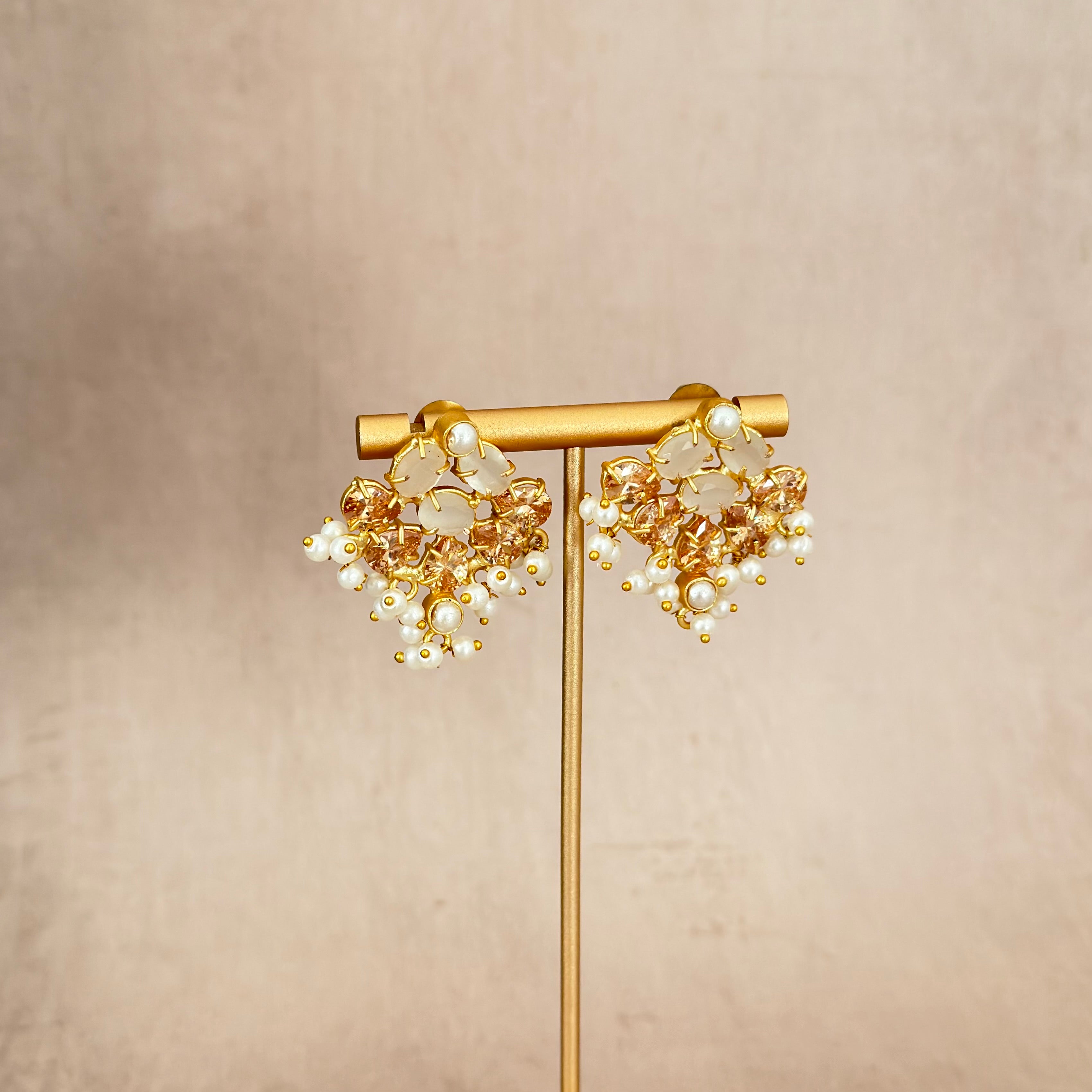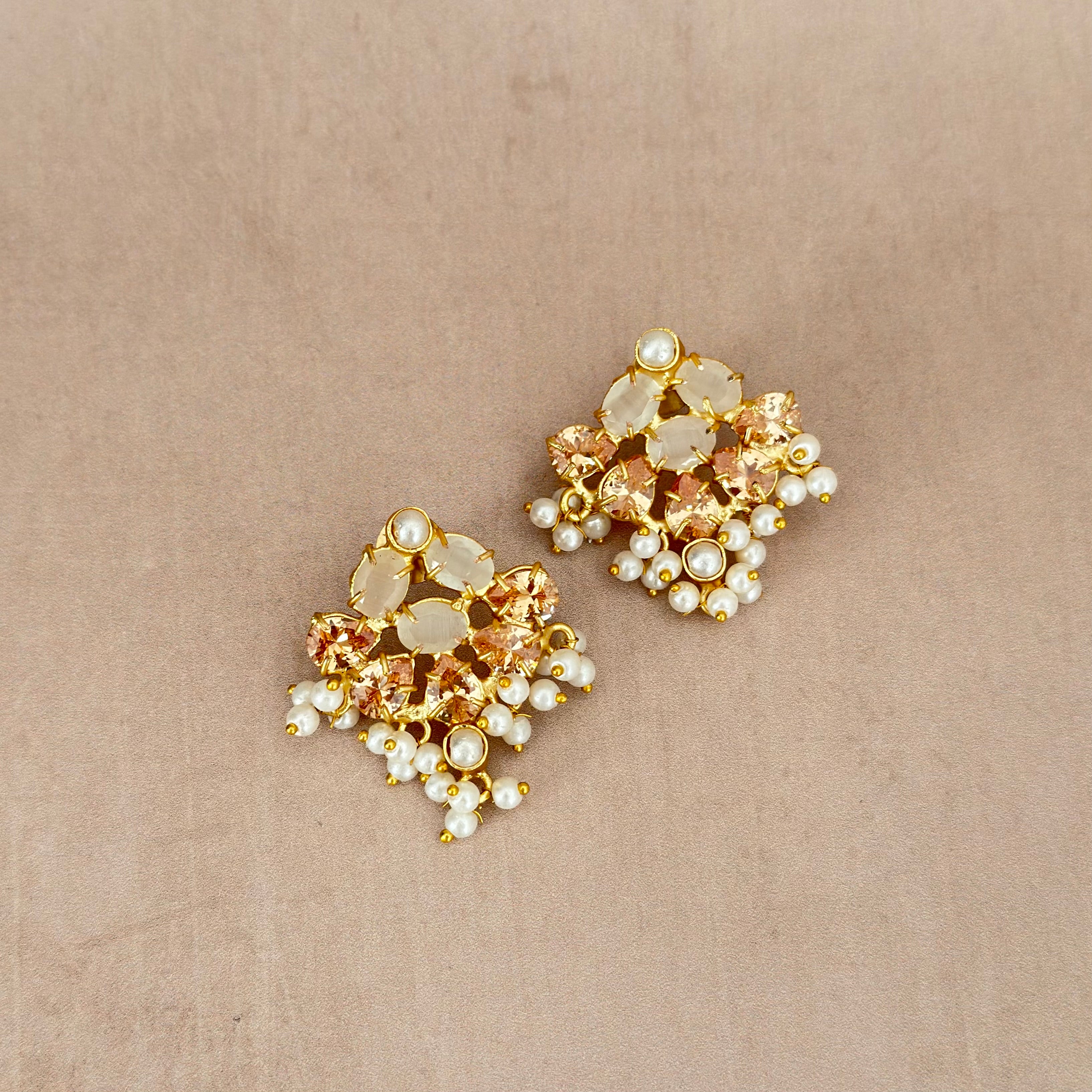 The Rahma Grey Stud Earrings combine beautiful sparkling champagne cubic zirconia for a timeless look. These elegant studs work perfectly for any occasion, adding a touch of sophistication to your jewellery collection. The brilliant stones catch the light beautifully, while the calming hues brings natural grace to your style. Simple, stunning, and timeless.