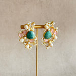Beautiful pearl and crystal studs that add instant sophistication to any look. These timeless earrings feature soft hues of jade and pink with lustrous pearls paired with sparkling crystals for a classic yet eye-catching look. Perfect for any occasion.