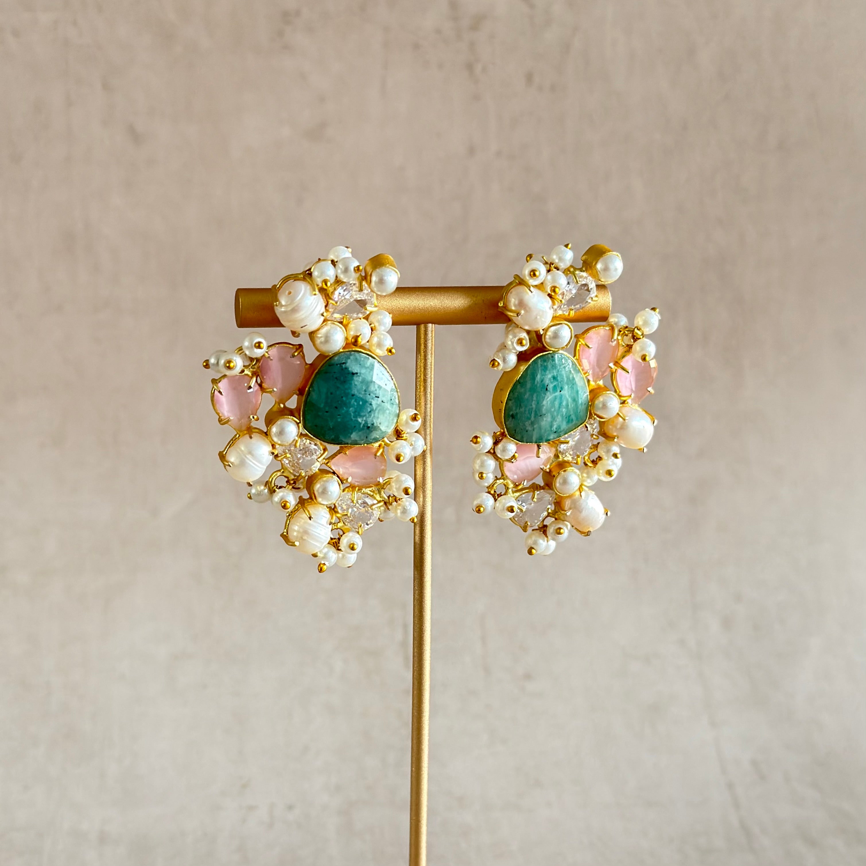 Selah Pearl Jade Crystal Studs