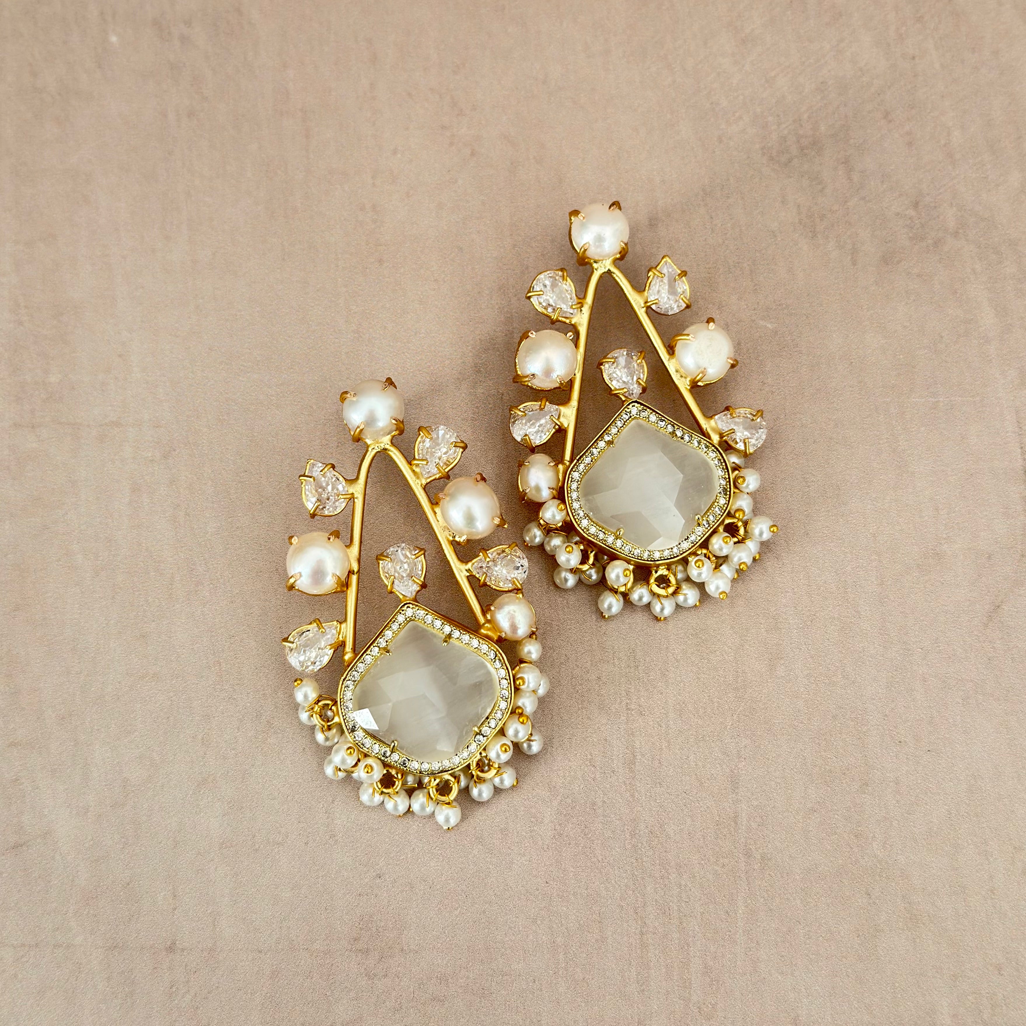 Make a statement with the Zohra Grey Pearl Stud Earrings. These charming studs combine lustrous pearls, sparkling crystals for effortless elegance. Perfect for any occasion.